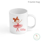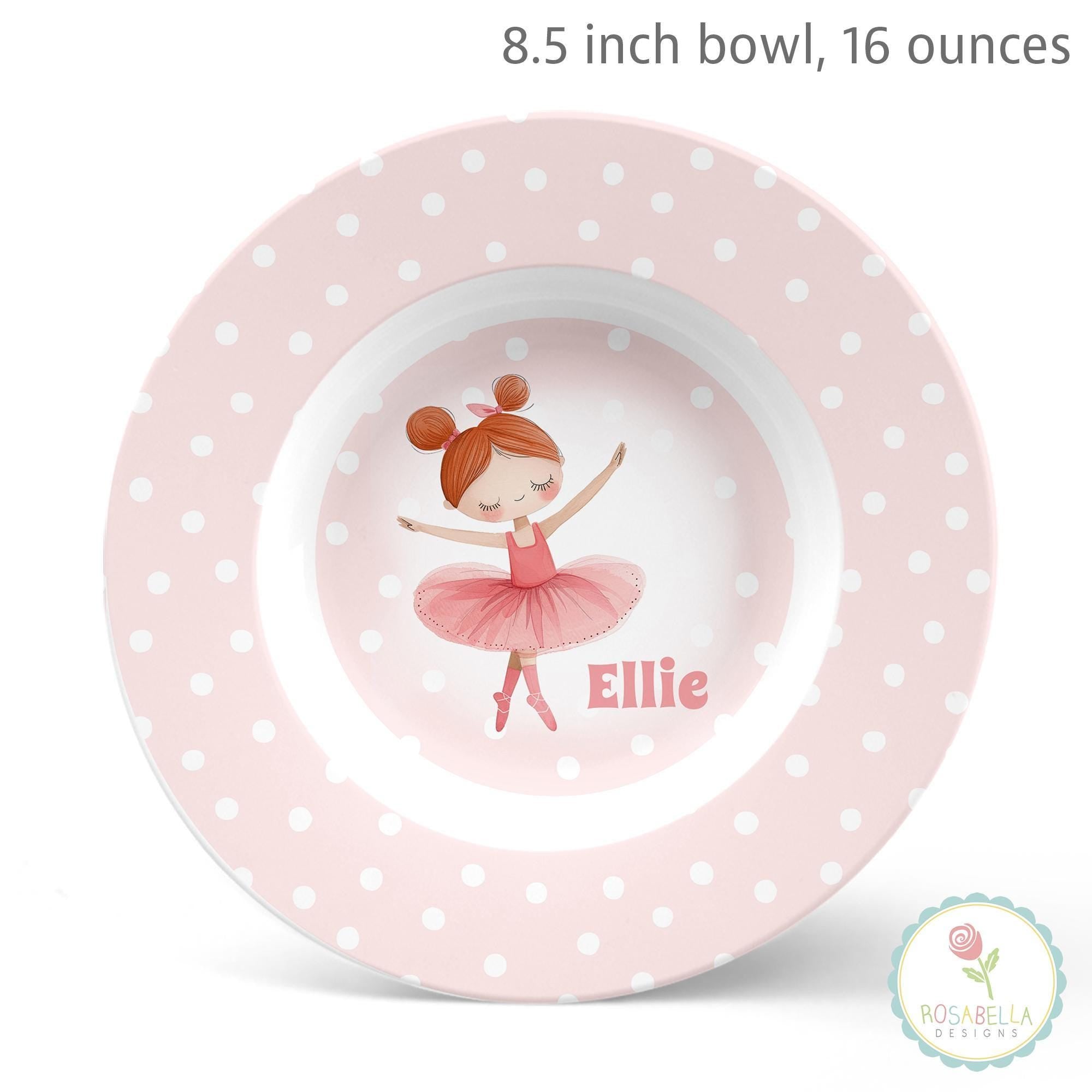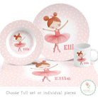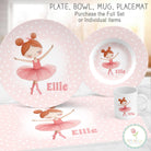 Personalized Ballerina Girl Tableware Set | Red Hair Pink Plate, Bowl, Mug, Placemat, Utensils