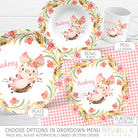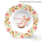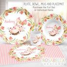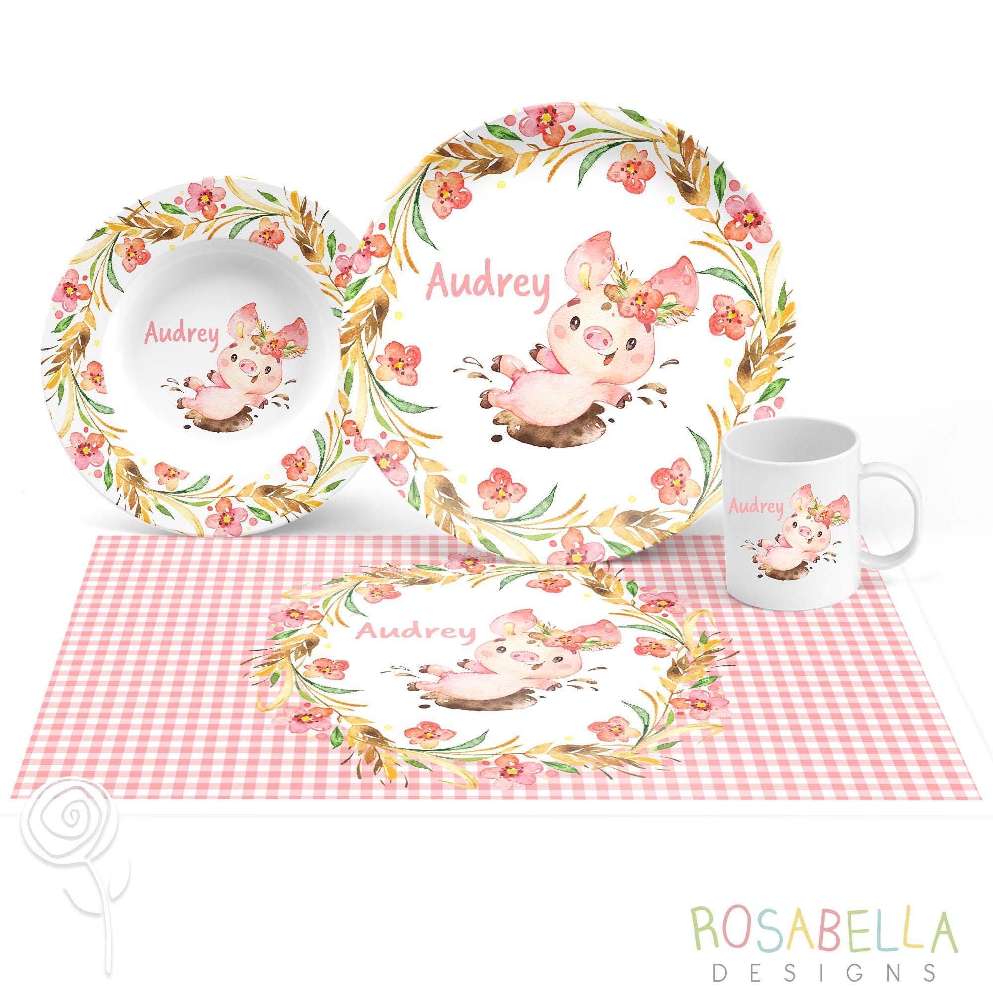 Dinnerware with cute pig and flowers that is personalized with baby's nameΒ
