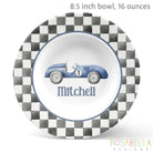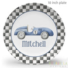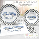 Personalized Vintage Race Car Tableware Set | Blue Car Plate, Bowl, Mug, Placemat, Utensils